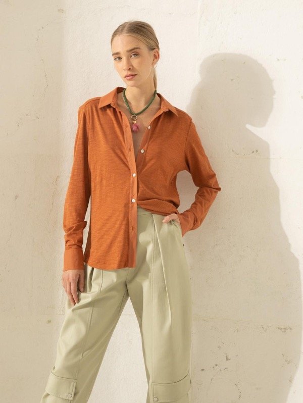 Camisa confeccionada en tejido 100% algodón liso con detalles en poplín. Fit clásico con cuello camisero y primer botón a la vista. Acceso mediante botones nacarados en el delantero, y detalle muy especial de logo bordado en el interior. Mangas largas con botones a tono.