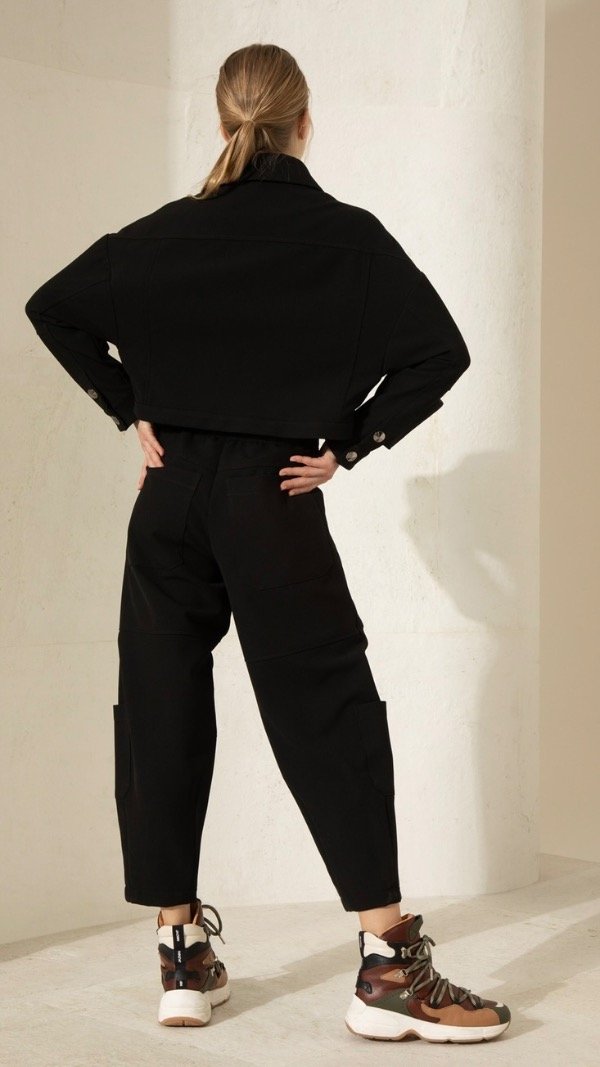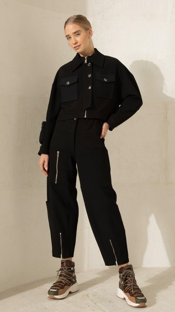 Pantalón cargo con cintura elastizada. Tiene bolsillos plaqué en el frente, con detalle de un bolsillo interno extra escondido en el lado izquierdo. Posee cierres en el ruedo para ampliar su fit en la botamanga. Lleva bolsillos en la espalda y en los laterales. Completa el conjunto la Chaqueta Bleecker.Composicion: Tela base: 66% Poliester - 28% Viscosa - 6% Elastano. Entretela: 100% poliéster. Envivado: 100% Algodón