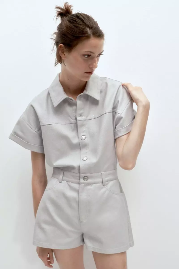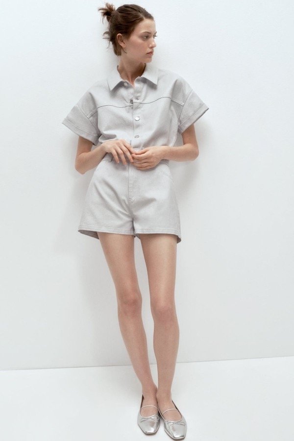 Plateado, tiene como brillitos.