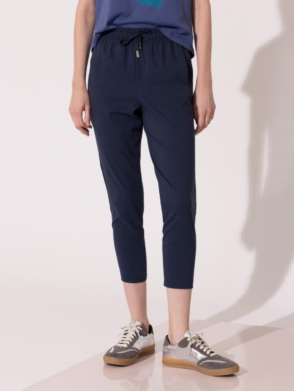 Babucha de tiro alto confeccionada en algodón elastizado. Acceso por cintura elastizada que aporta confort en su uso y permite adaptarse cómodamente a tu cuerpo. Incluye cinta regulable para que puedas ajustar su calce. Posee bolsillos laterales súper funcionales. Re imaginamos nuestra clásica babucha para que puedas completar tus conjuntos de esta temporada.