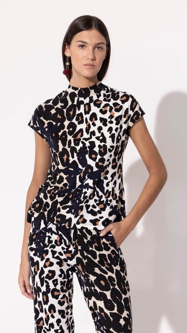 Remera Valencia confeccionada en tejido 100% algodón. Posee estampa, escote redondo y mangas murciélago que aportan volumen y movimiento a la prenda.