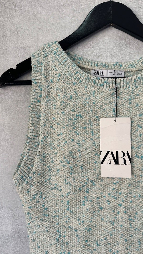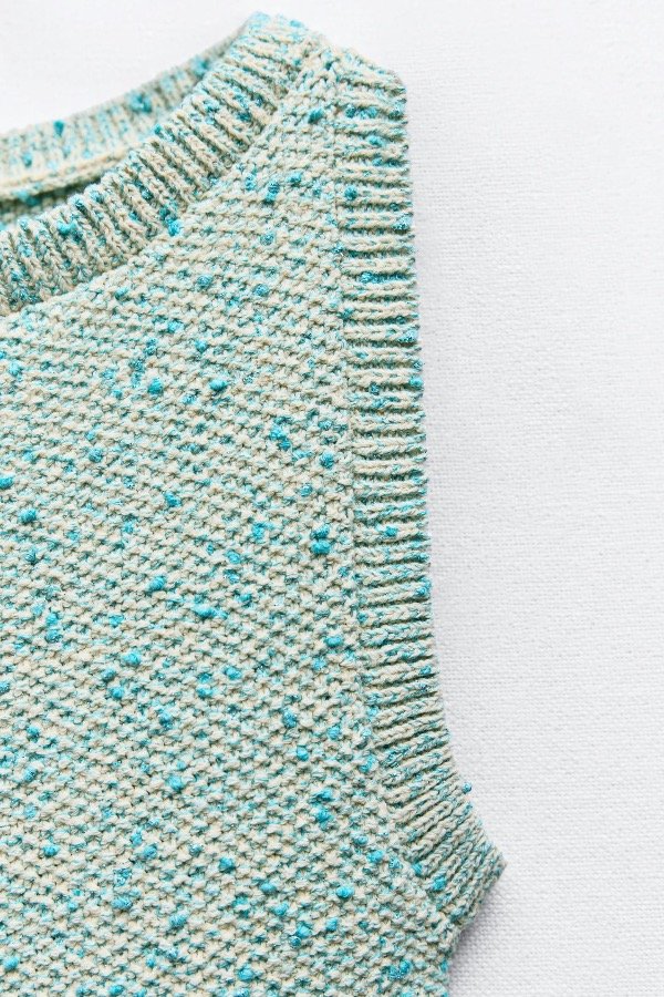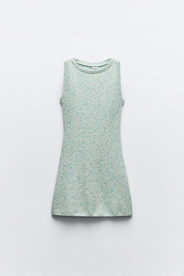 Vestido sin mangas con escote redondo. Fondo acampanado, tejido con hilo brillante.